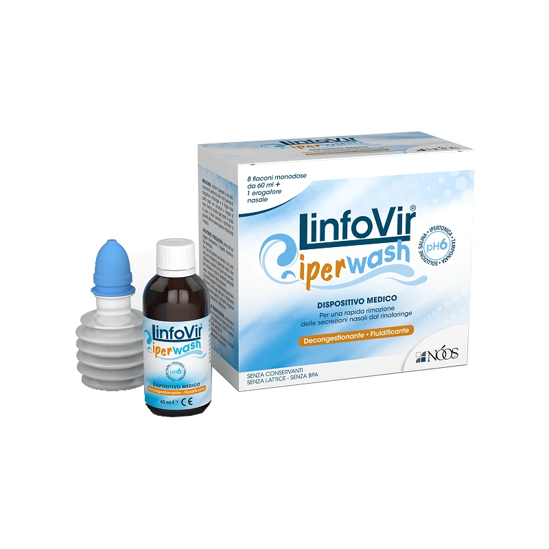 NOOS SRL LINFOVIR IPERWASH SOLUZIONE SALINA IPERTONICA TAMPONATA 8 FLACONI DA 60 ML + 1 EROGATORE NASALE